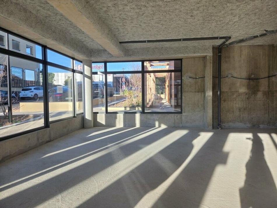 Genas centre, en pied d'immeuble très beau local de 89 m² à louer. Livré brut de murs, fluides en attente. Belle visibilité en angle avec un linéaire de vitrine sur 50% de la façade. A proximité parking Carrefour Market et pharmacie. Abonnement triphasé. Toutes activités Métiers de Bouche sont INTERDITES. Disponible immédiatement.