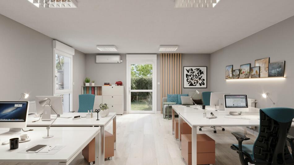 Lyon 8, proche hopitaux et faculté médecine, à louer local professionnel ou bureau. Les locaux sont en en rez-de-jardin avec un petit extérieur, dans un immeuble mixte. A deux pas du métro Laënnec et de Grange Blanche. Organisés en un open-space ils sont faciles à aménager. Ils bénéficient d'un sanitaire privatif. Le bureau est climatisé, équipé de volets roulants électriques, accès sécurisé (interphone + portillon fermé). Accessibilité PMR, chauffage central au gaz compris dans la provision de charges, normes RT 2012 et fibre optique. 1 place de parking extérieur. Disponible à la location